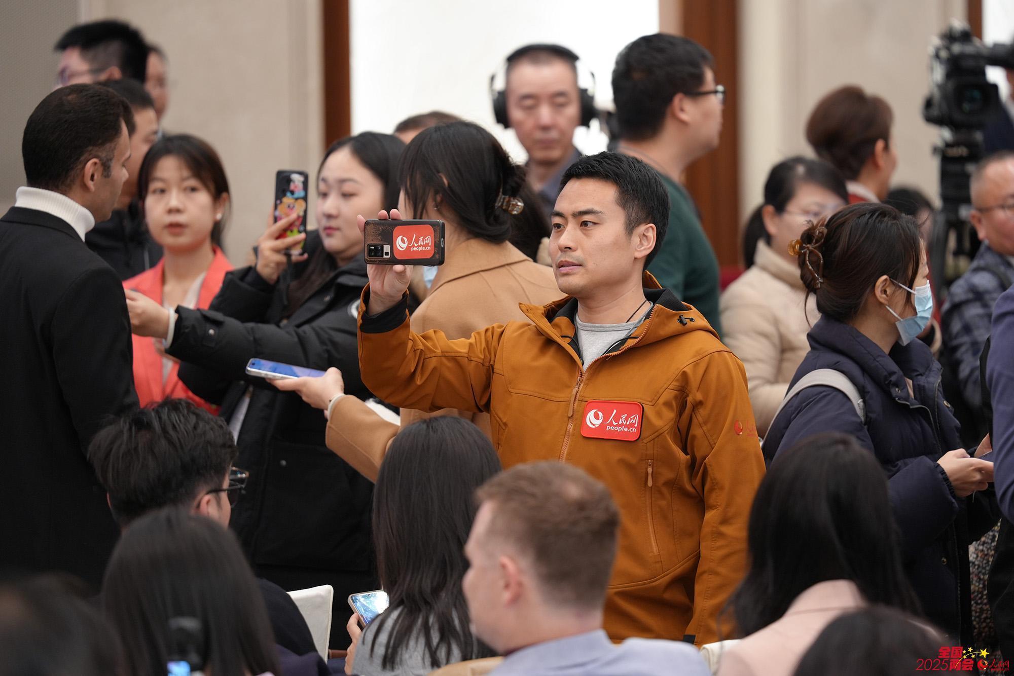 寰宇政协十四届三次会议新闻发布会现场,媒体记者举手发问。东谈主民网记者 苗子健摄 记者在寰宇政协十四届三次会议新闻发布会现场拍摄。东谈主民网记者 苗子健摄